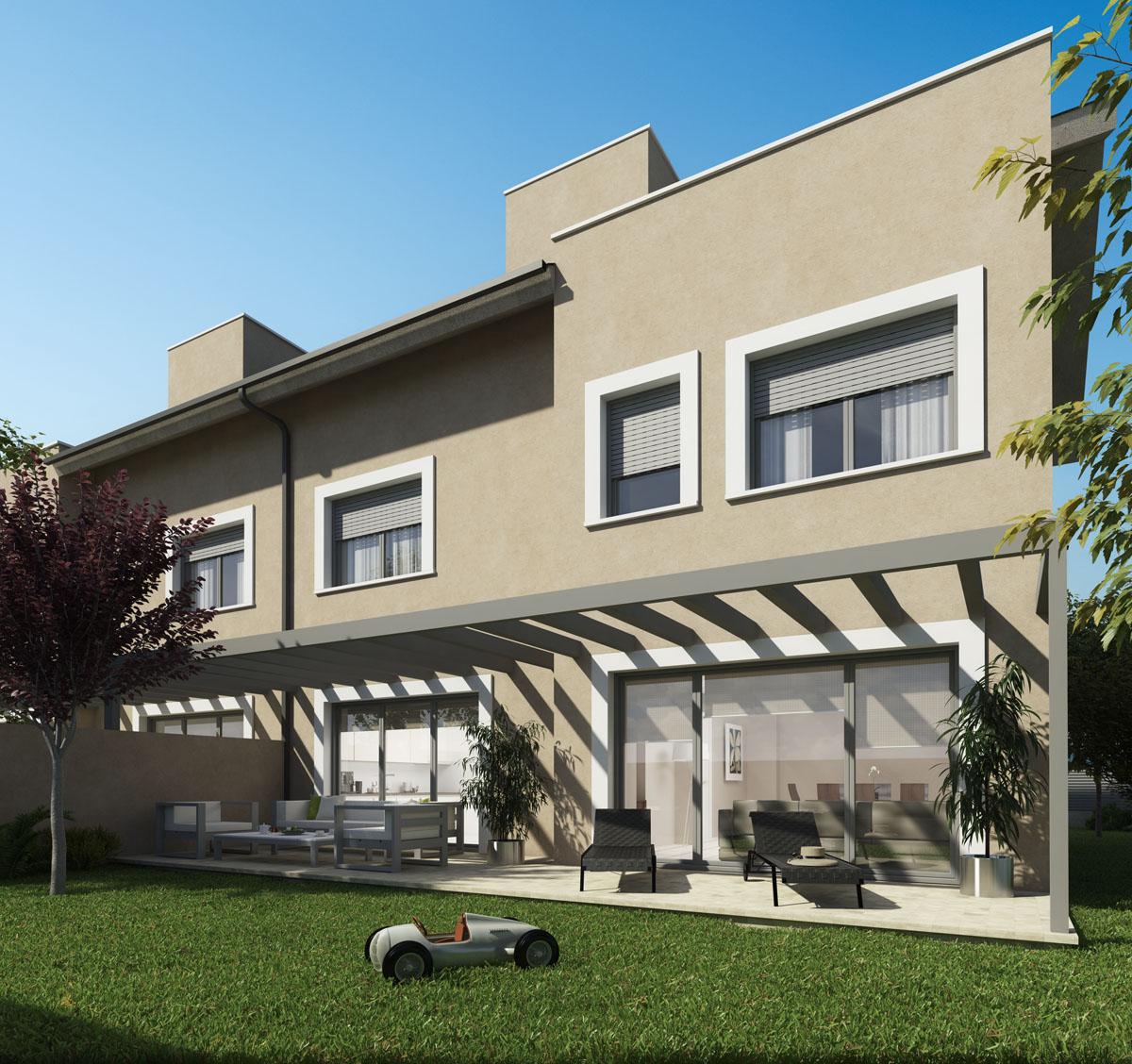 Todos los chalets tienen un jardín en la zona de entrada principal y una terraza junto al salón en la parte posterior, los chalets de esquina tendrán además un jardín perimetral privativo.